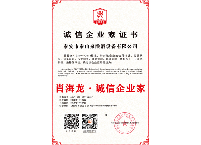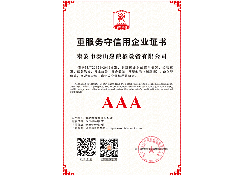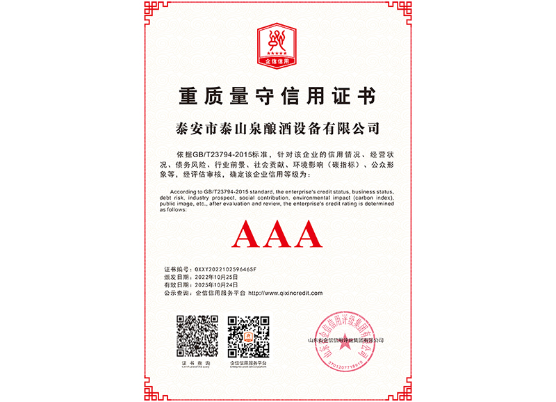 泰安市泰山泉釀酒設備有限公司,是一家專業(yè)從事釀酒設備機械化研發(fā)并集技術咨詢,工程設計,制造安裝,人員培訓及售后服務為一體的綜合性企業(yè),本公司主要產(chǎn)品為:大曲清香、小曲清香、大曲醬香、大曲濃香等香型白酒機械化設備。  本公司與中國科學院自動化研究所簽訂技術服務合同,引進先進技術,研究生產(chǎn)全自動化機械釀酒設備,由中國科學自動化研究所的技術支持,打造最先進的生產(chǎn)釀酒設備,公司有信心打造全國最先進白酒...